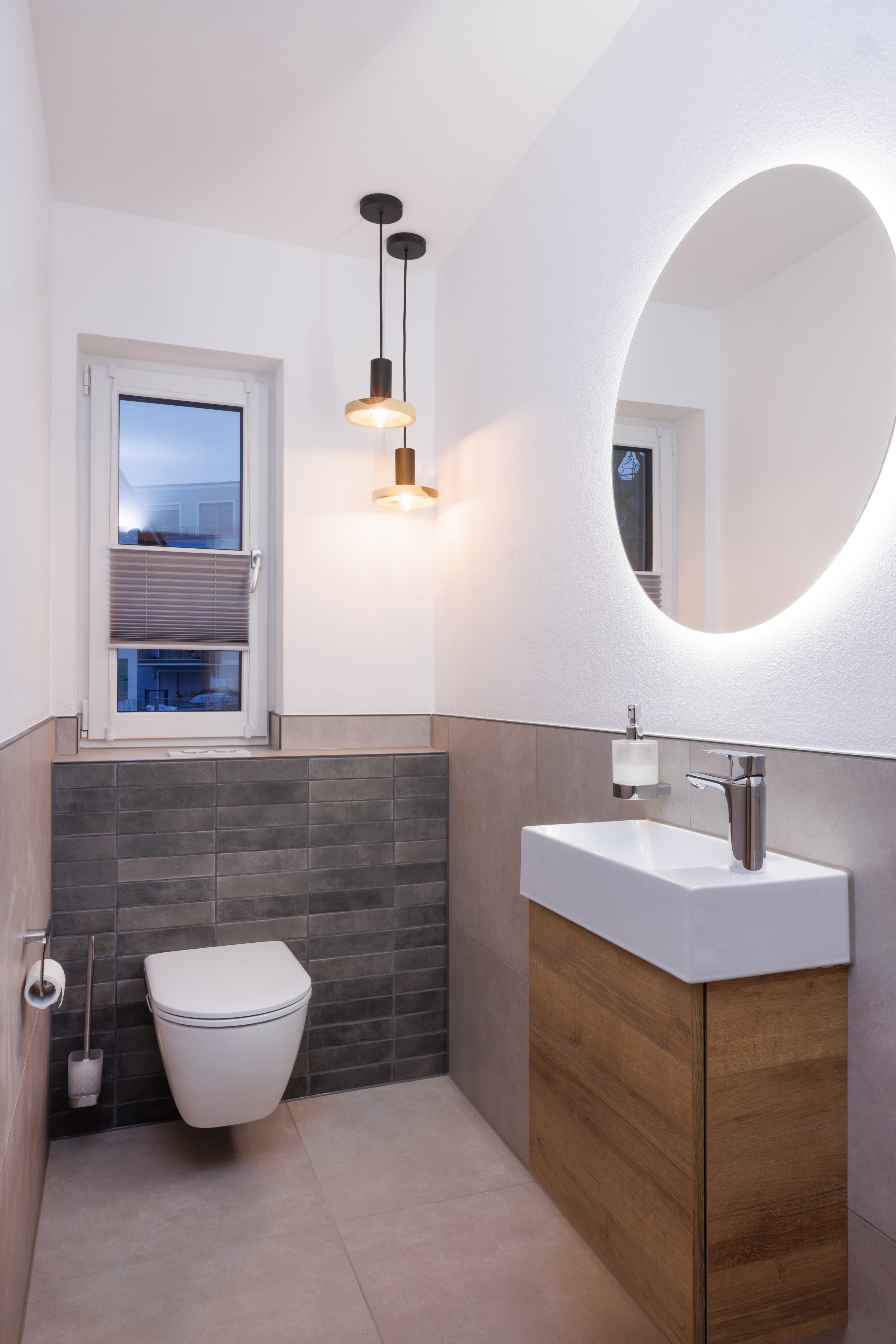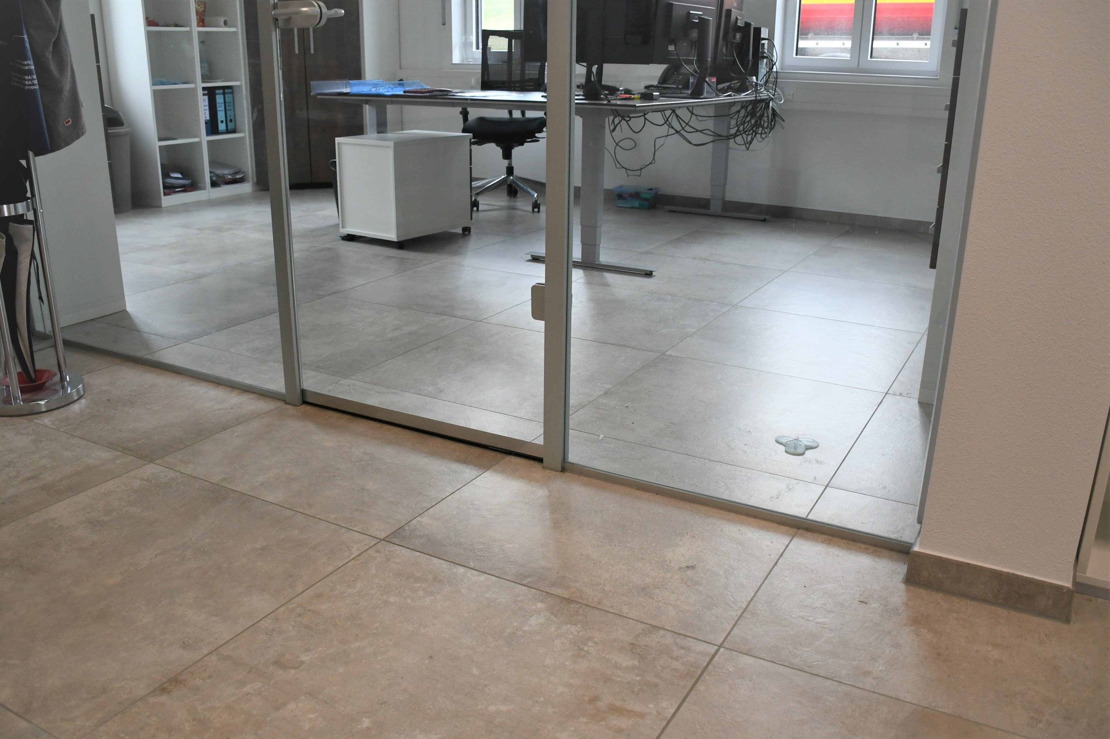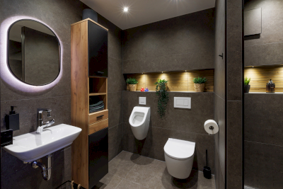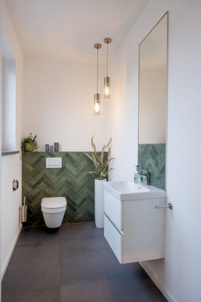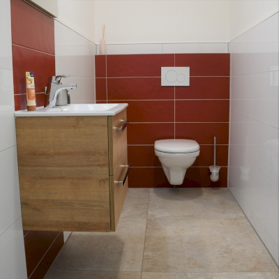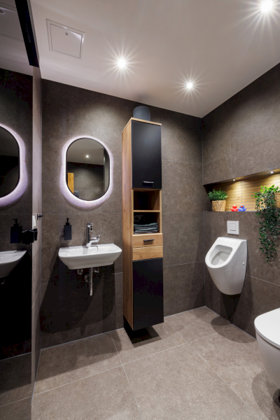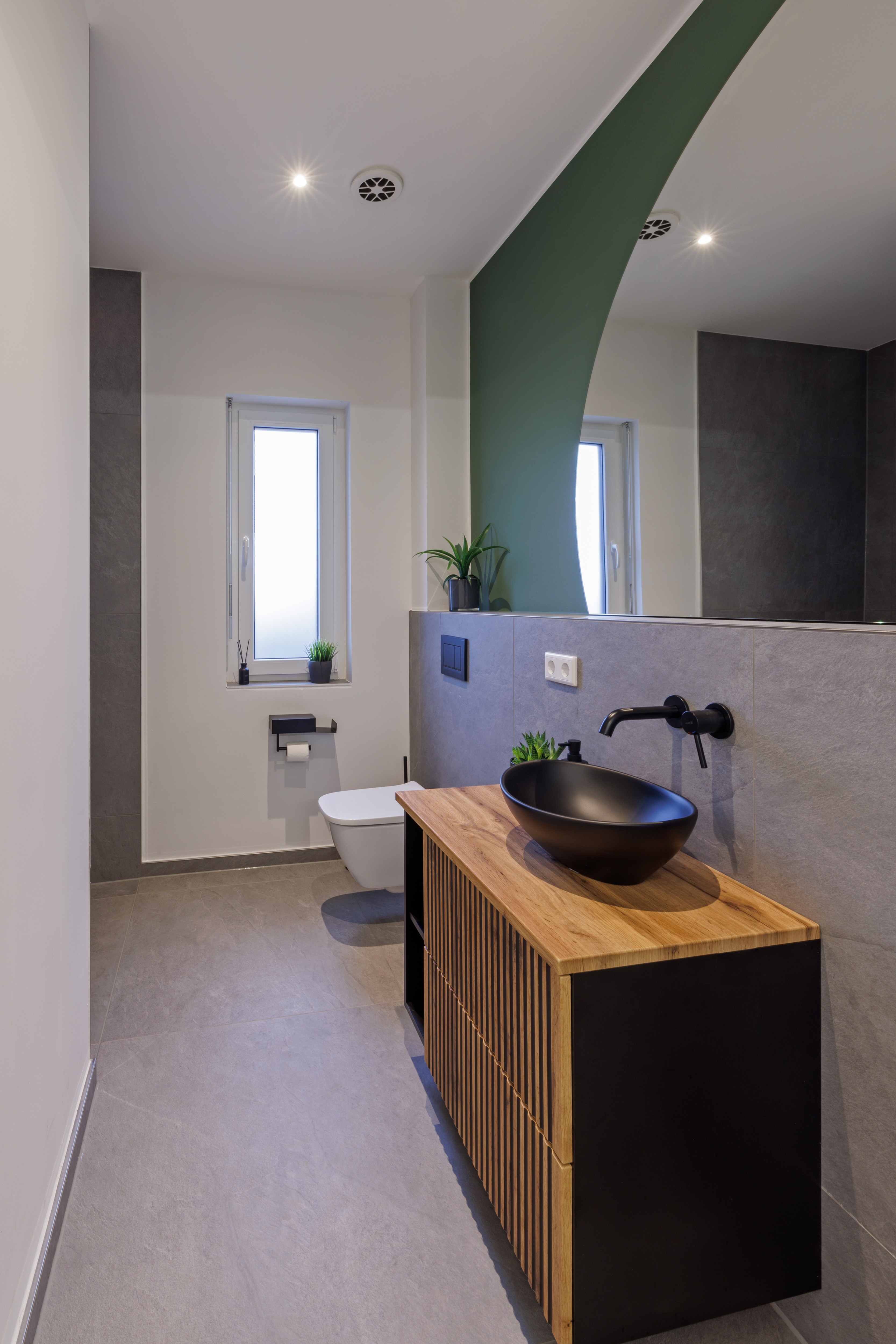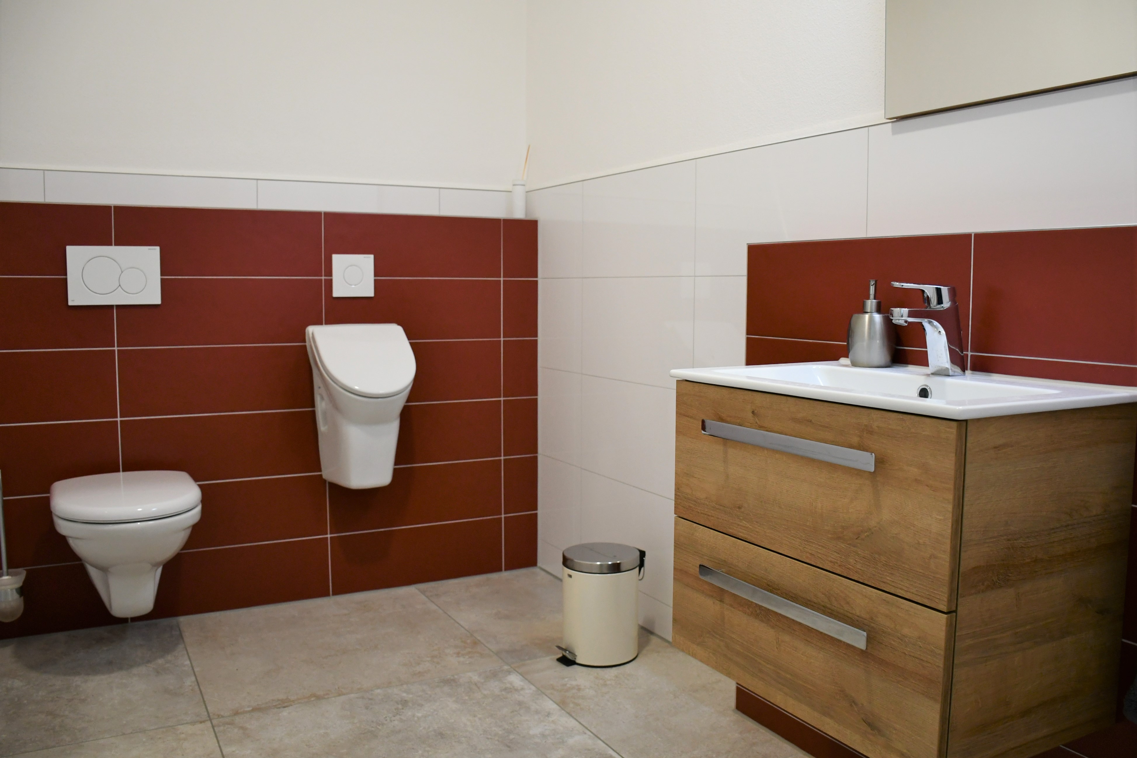 Büro-, Schulungsräume und Kundenwc in den Firmenfarben des Bauherrn