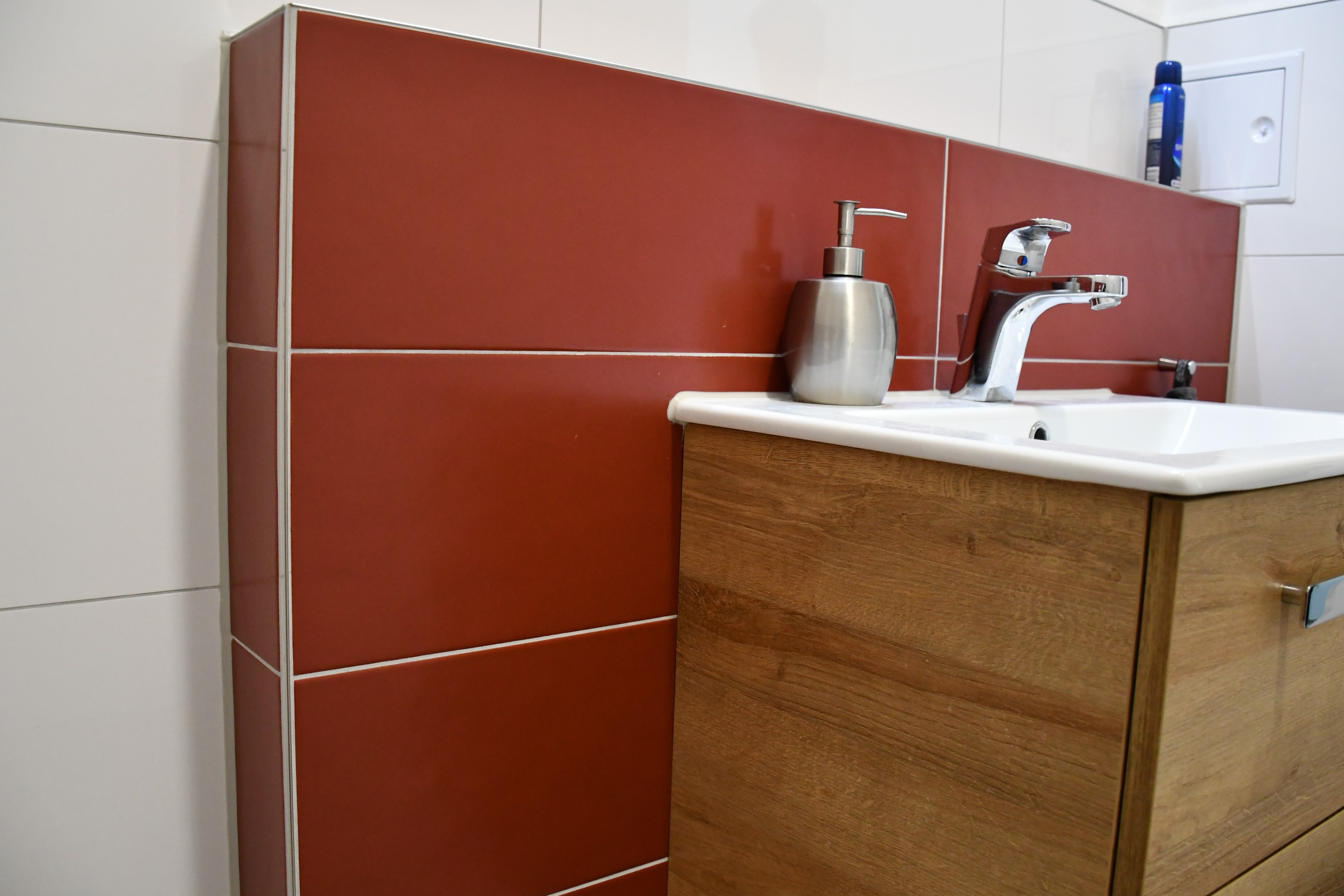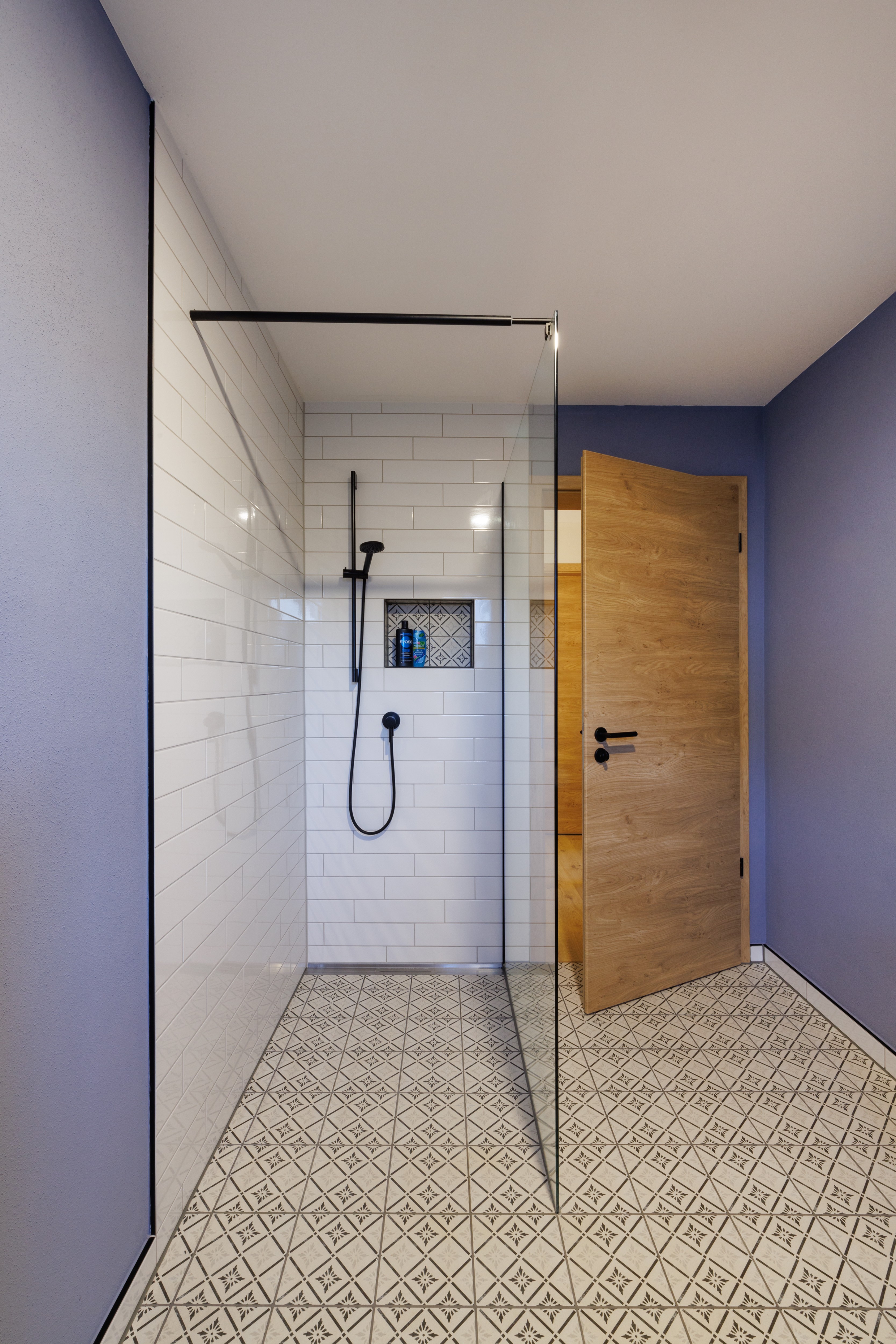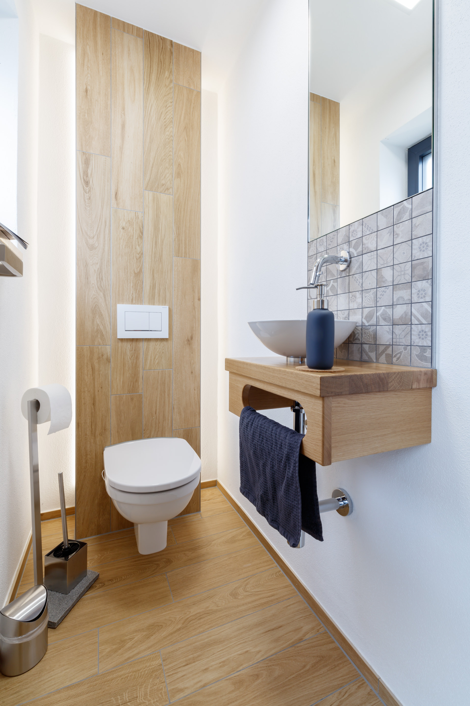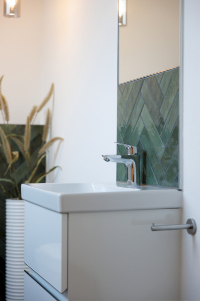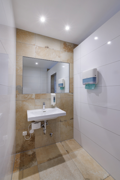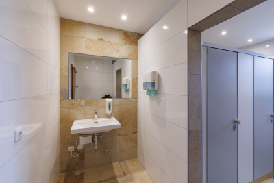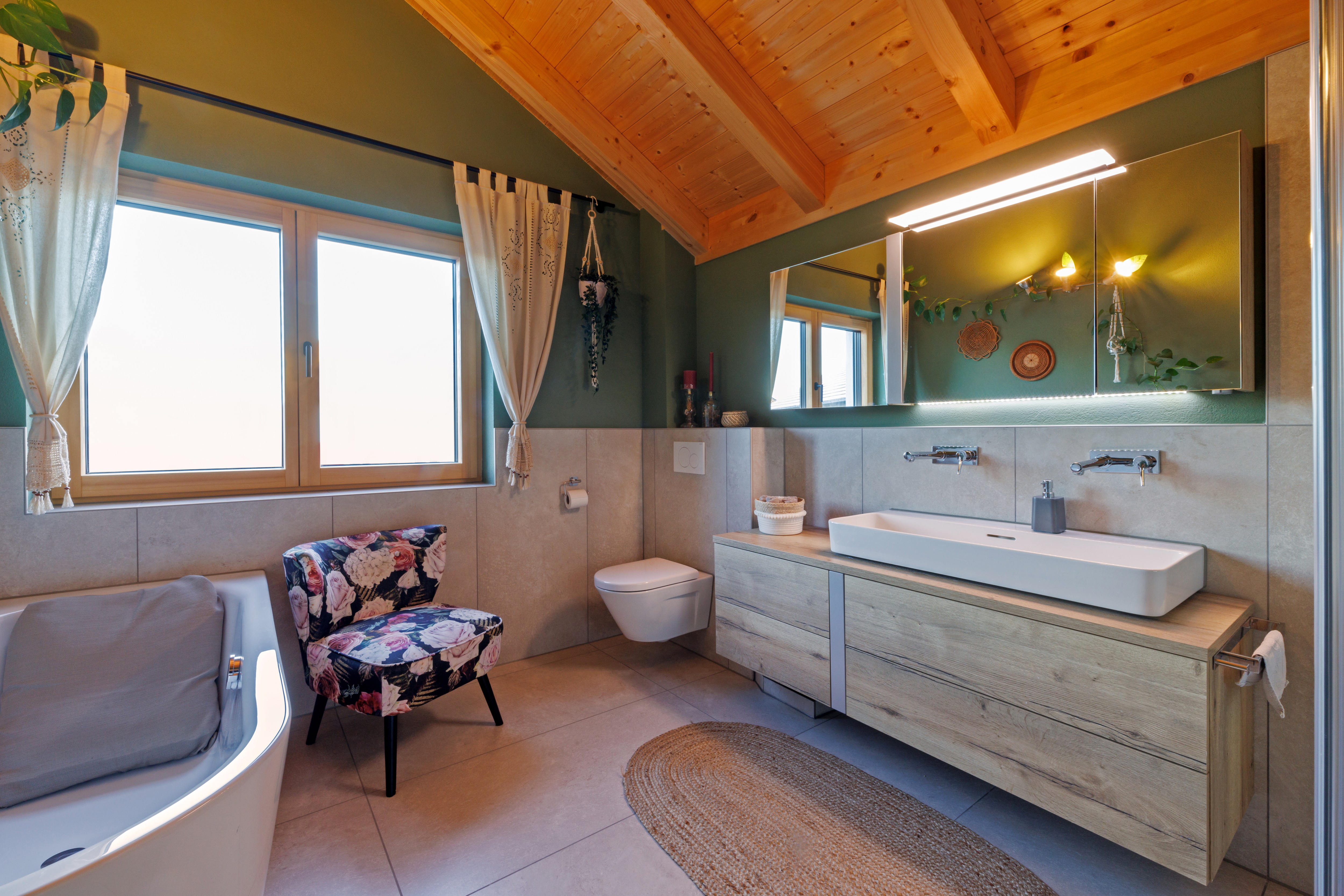 Büro-, Schulungsräume und Kundenwc in den Firmenfarben des Bauherrn